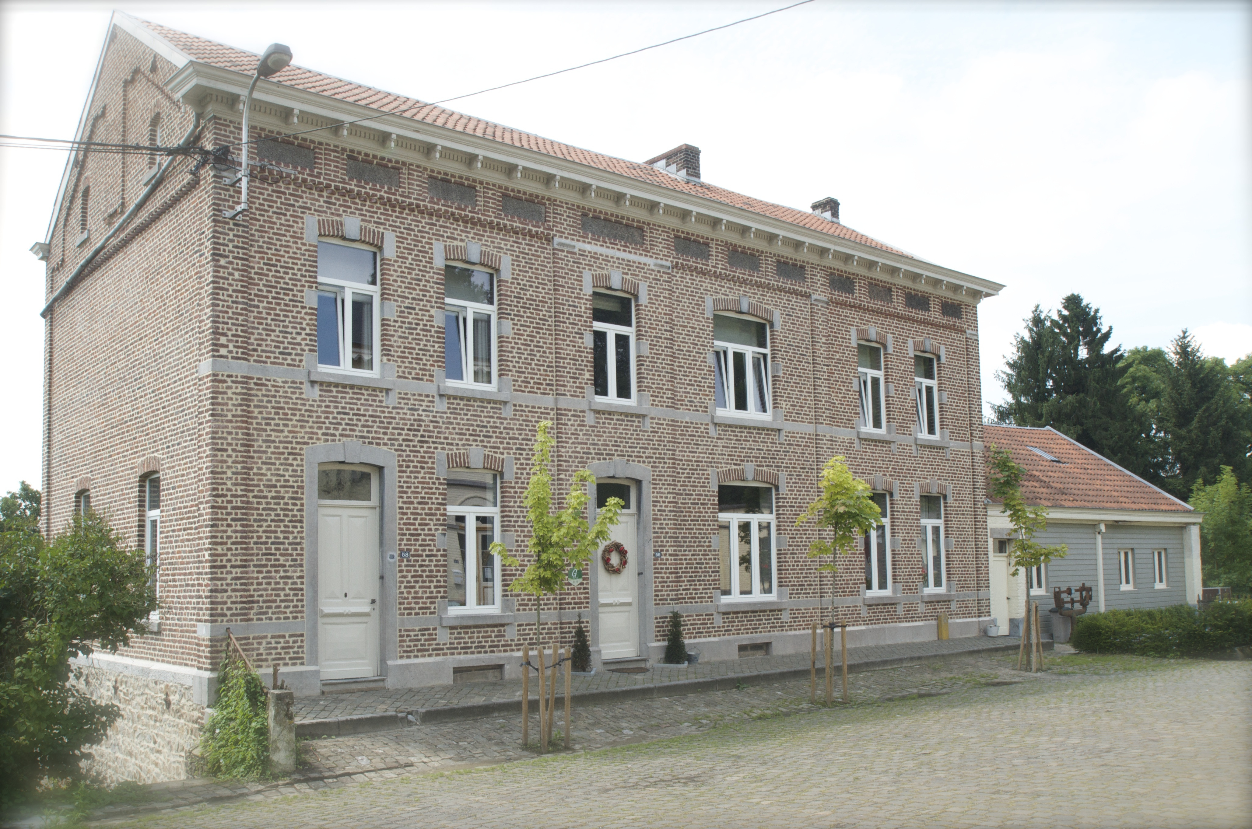 La première photo a été prise au début du XXème siècle. Y apparaissent de gauche à droite, Marie-Marguerite Bolsée, Léon Tychon et leurs deux premiers enfants Alfred et Léonie, ainsi que deux personnes non identifiées. Lorsque l' on compare cette photo avec la seconde, prise en 1979, on s' aperçoit que la maison a été prolongée sur sa droite: à la place de ce qui devait servir à ranger la charette et les chevaux, on trouve deux fenêtres supplémentaires au rez-de-chaussée et au premier étage. La date de ces transformations n' est pas connue.